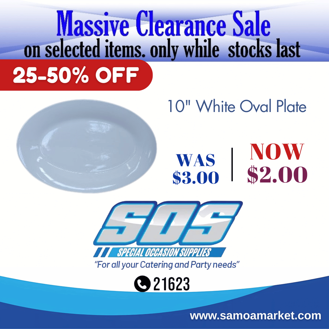 10" White Oval Plate "Pick Up From S.O.S LTD, Togafuafua"