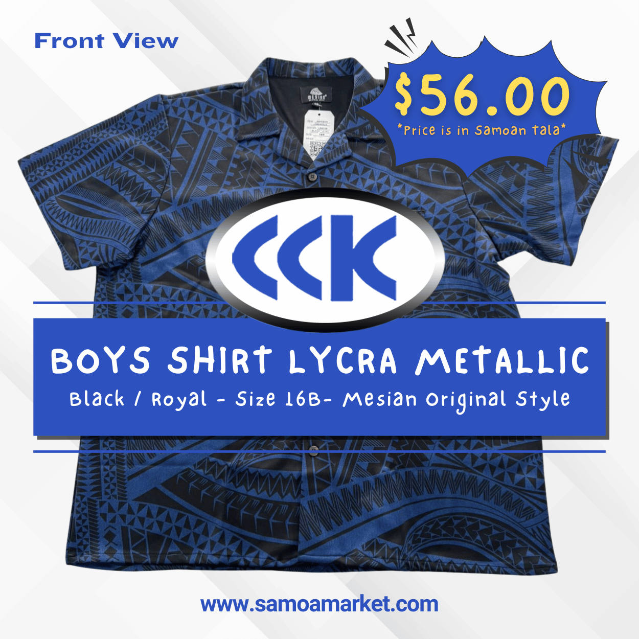 BOYS SHIRT LYCRA METALLIC - Black / Royal - Size 16B- Mesian Original Style "PICKUP AT CCK CLOTHING STORE SALEUFI, VAITELE or SALELOLOGA"