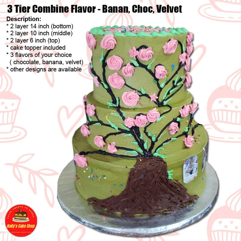 3 Tier Combine Flavor - Choc, Banana, Velvet Description: * 2 layer 14 inch (bottom) * 2 layer 10 inch... Read more