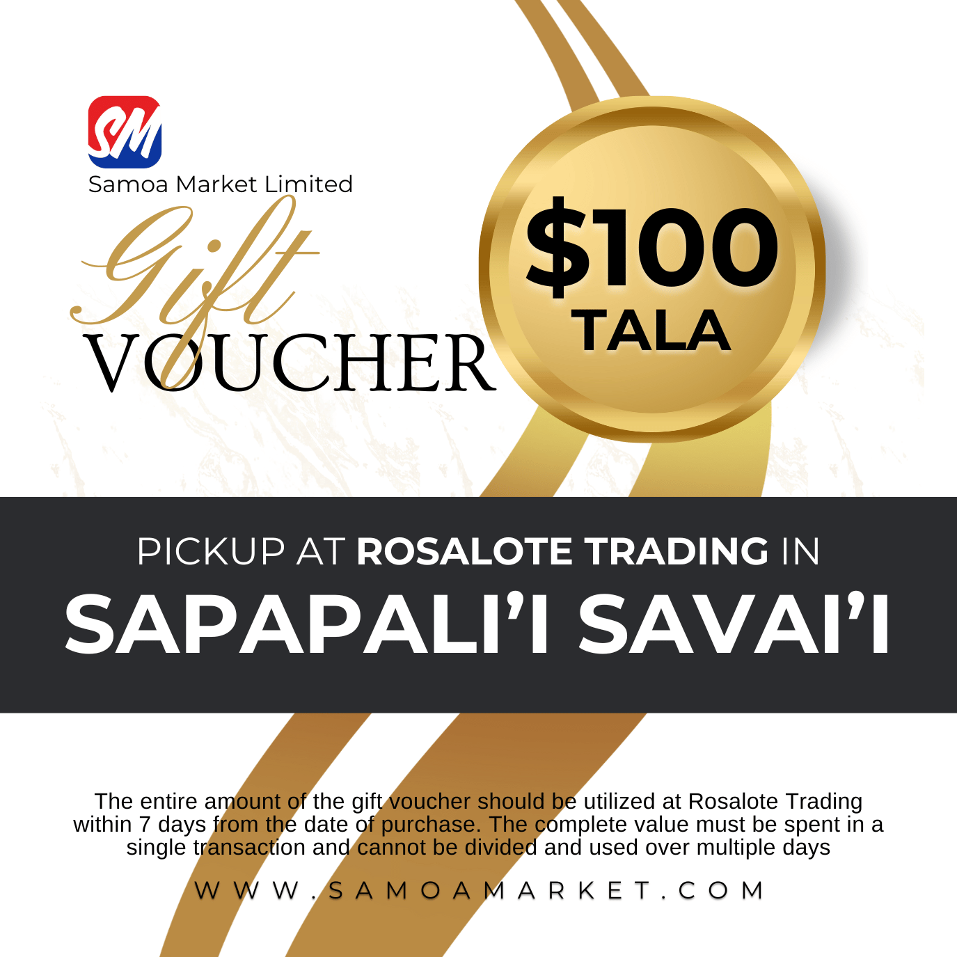 $100 Tala Gift Voucher "PICK UP FROM ROSALOTE STORE, SAPAPALI'I, SAVAI'I"
