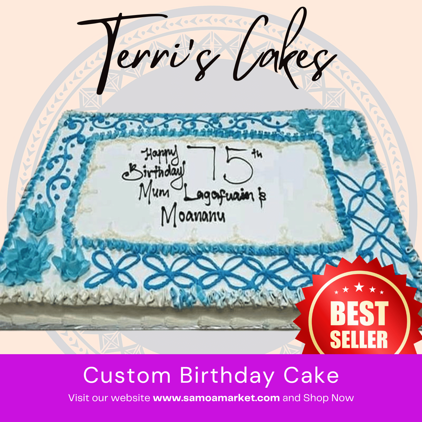 Custom Birthday Cake similar style to Picture from Terri's Cakes, Taufusi (24HRS NOTICE REQUIRED, PICKUP UPOLU ONLY)