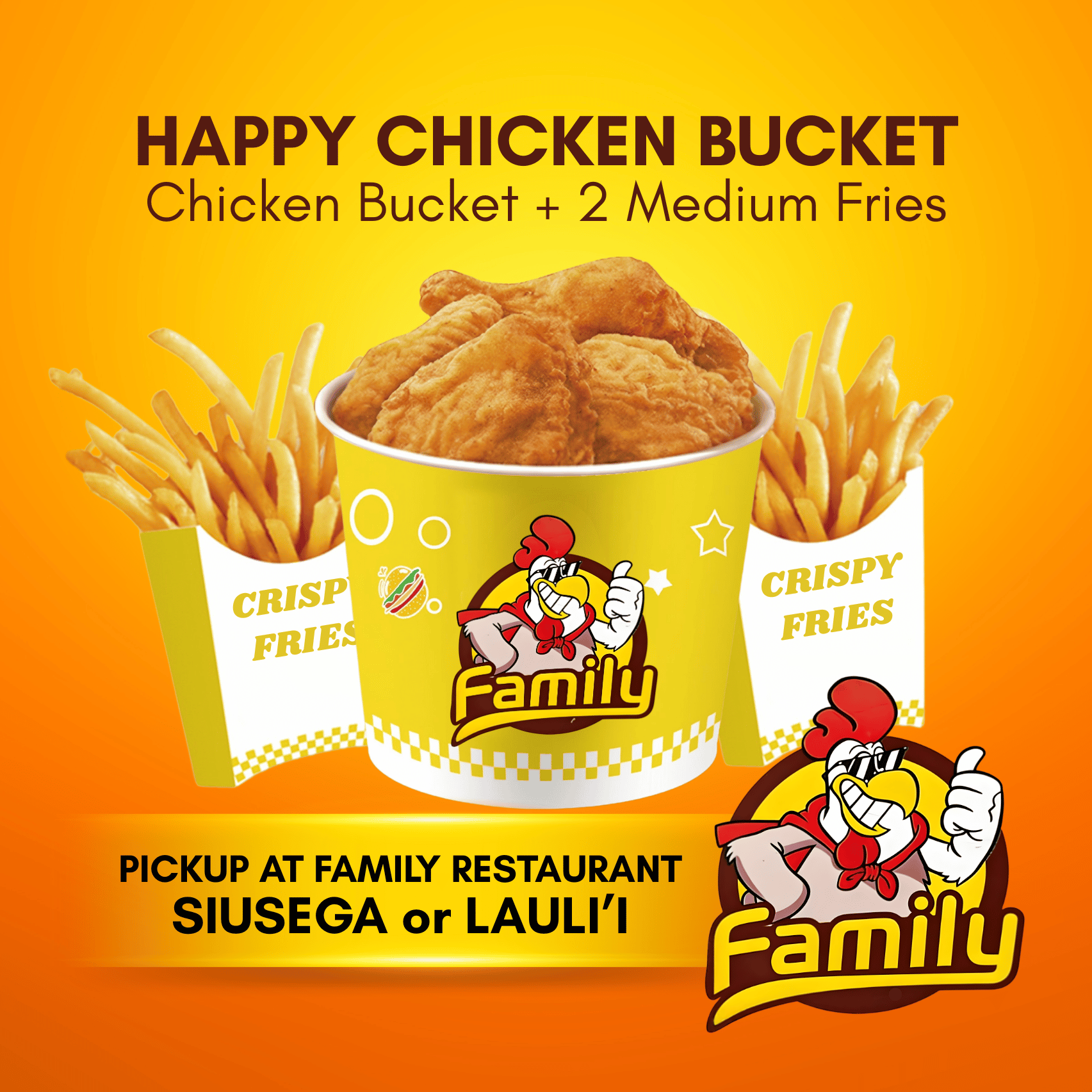 Happy Chicken Bucket (PICK UP FROM FAMILY RESTAURANT SIUSEGA OR LAULI'I ONLY)