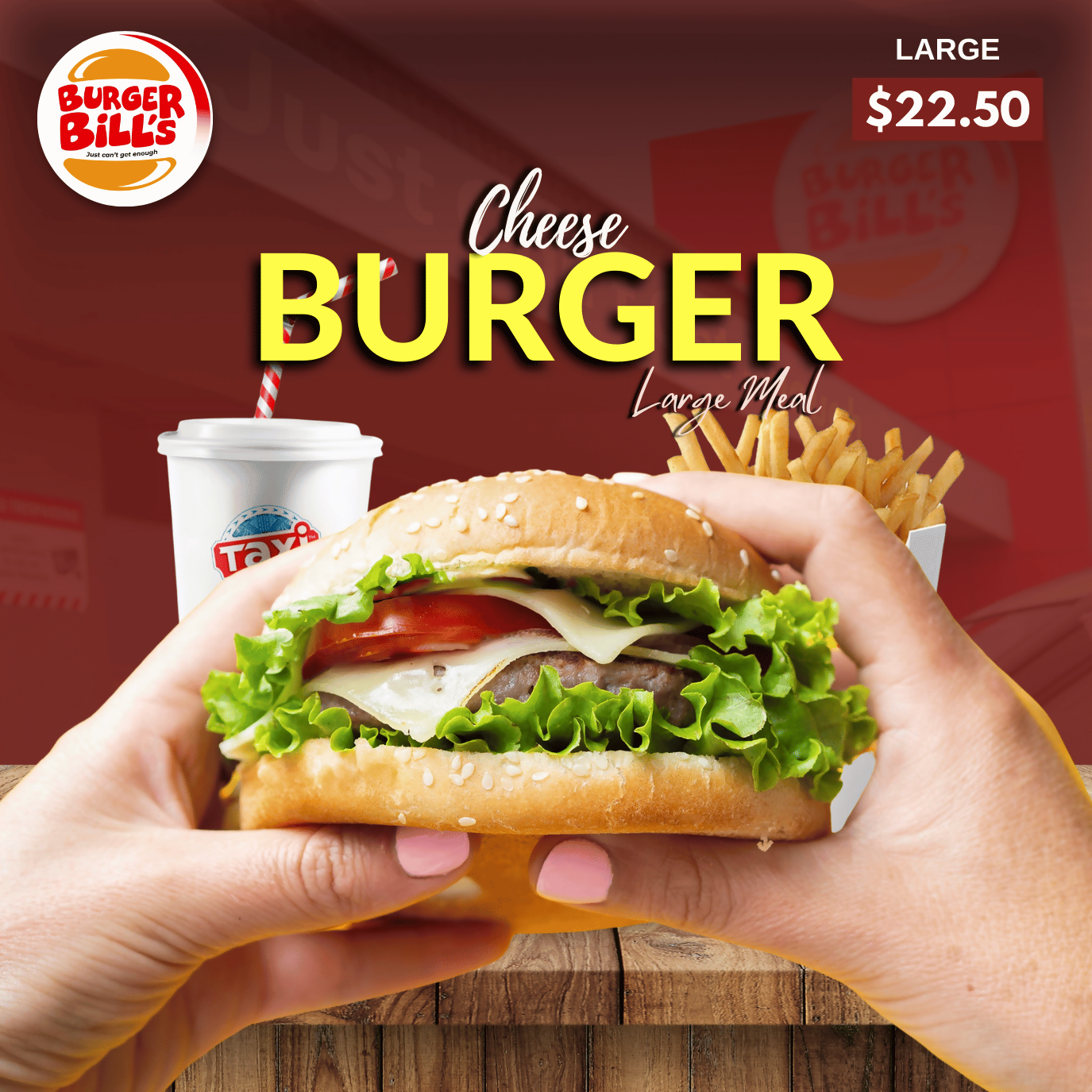 Large Cheese Burger Meal with Drink "PICKUP FROM BURGER BILLS VAITELE ONLY"