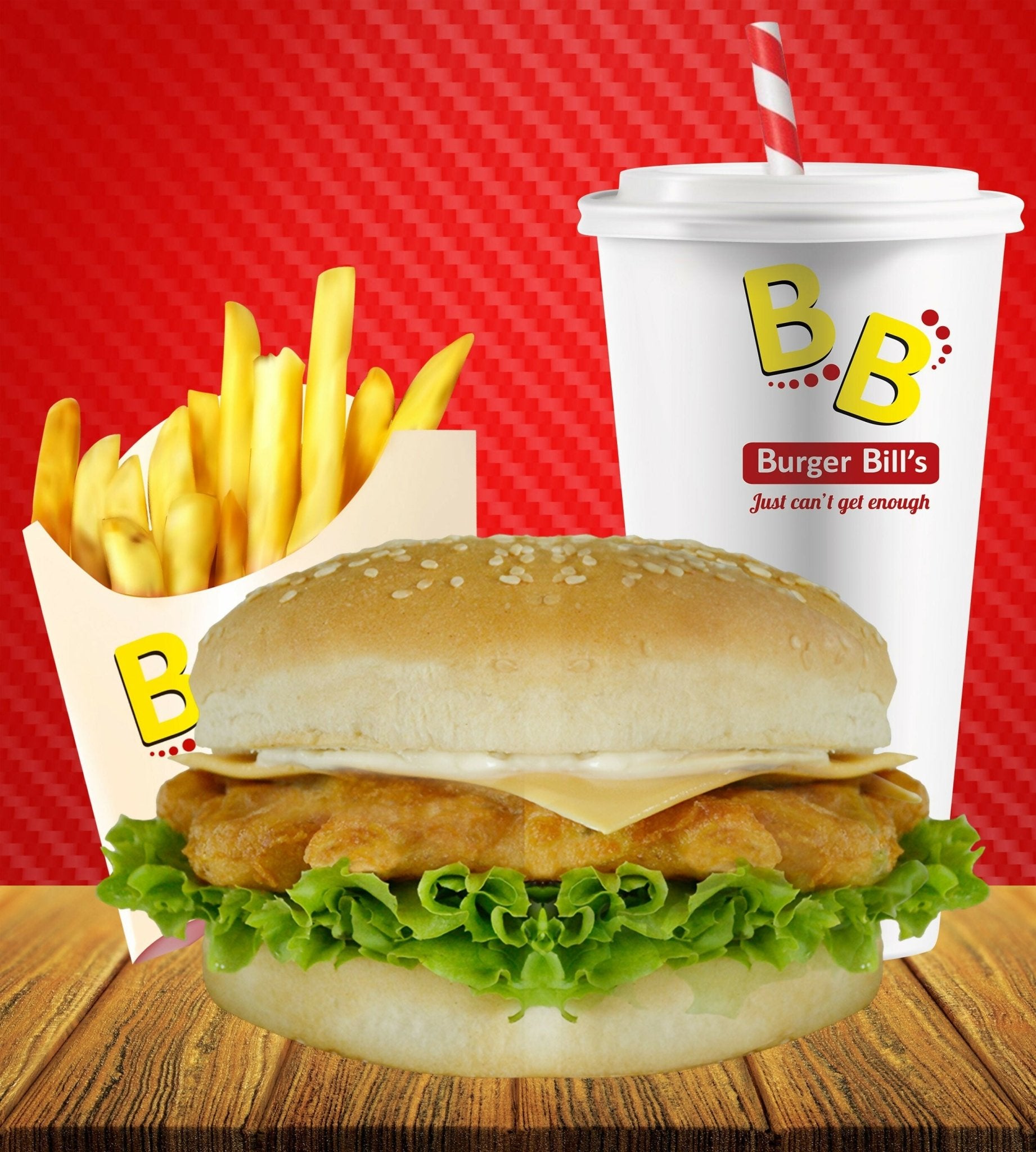 Large Chicken Burger Meal with Large Drink "PICKUP FROM BURGER BILLS VAITELE ONLY"