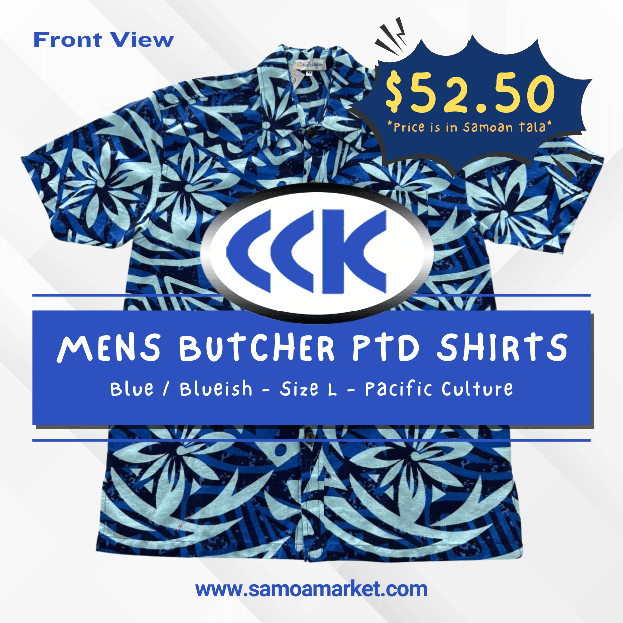 MENS BUTCHER PTD SHIRTS - Blue / Blueish - Size L - Pacific Culture "PICKUP AT CCK CLOTHING STORE SALEUFI, VAITELE or SALELOLOGA"