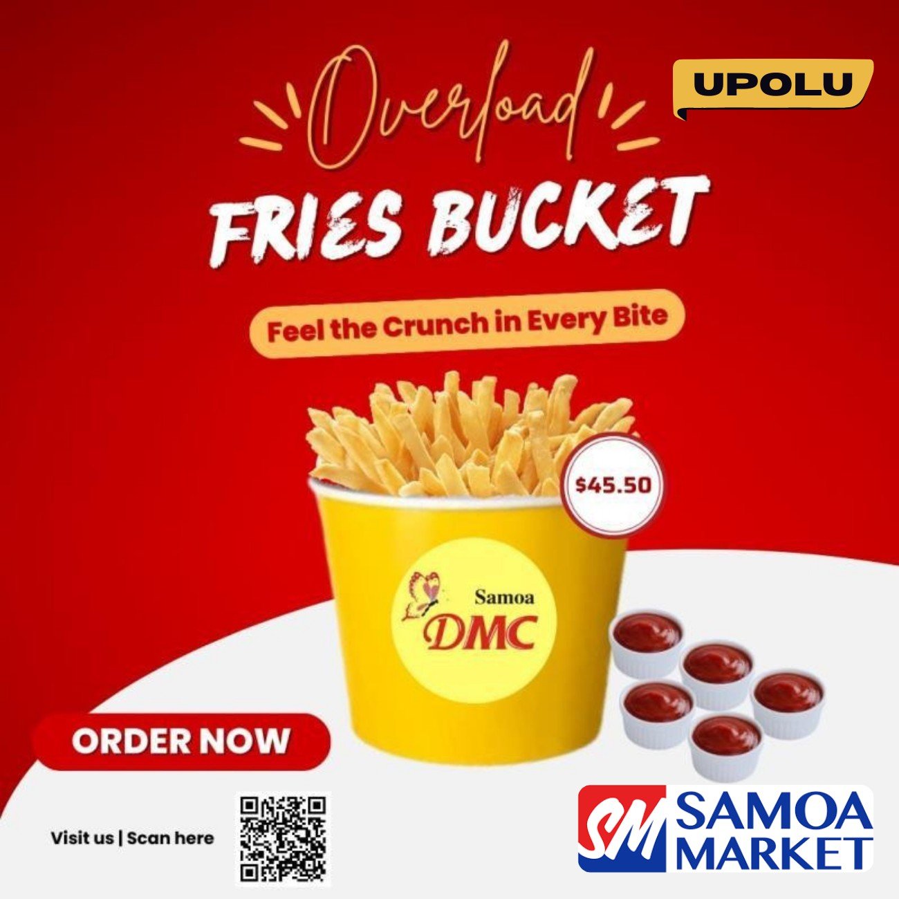 Overload Fries Bucket "PICKUP FROM DMC UPOLU VAITELE, VAILOA, FUGALEI, PLAZA, LOTOPA AND MOTOOTUA"