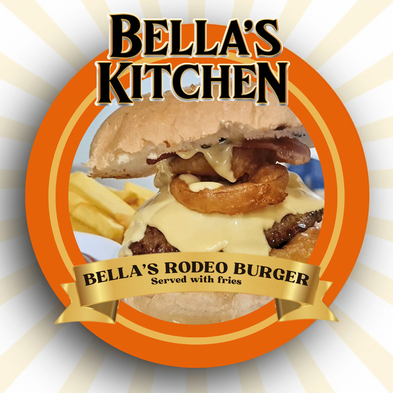 Get ready for the Bellas Rodeo — stacked with 2 juicy patties, 2 melted cheeses, crispy onion rings, smoky bacon,... Read more