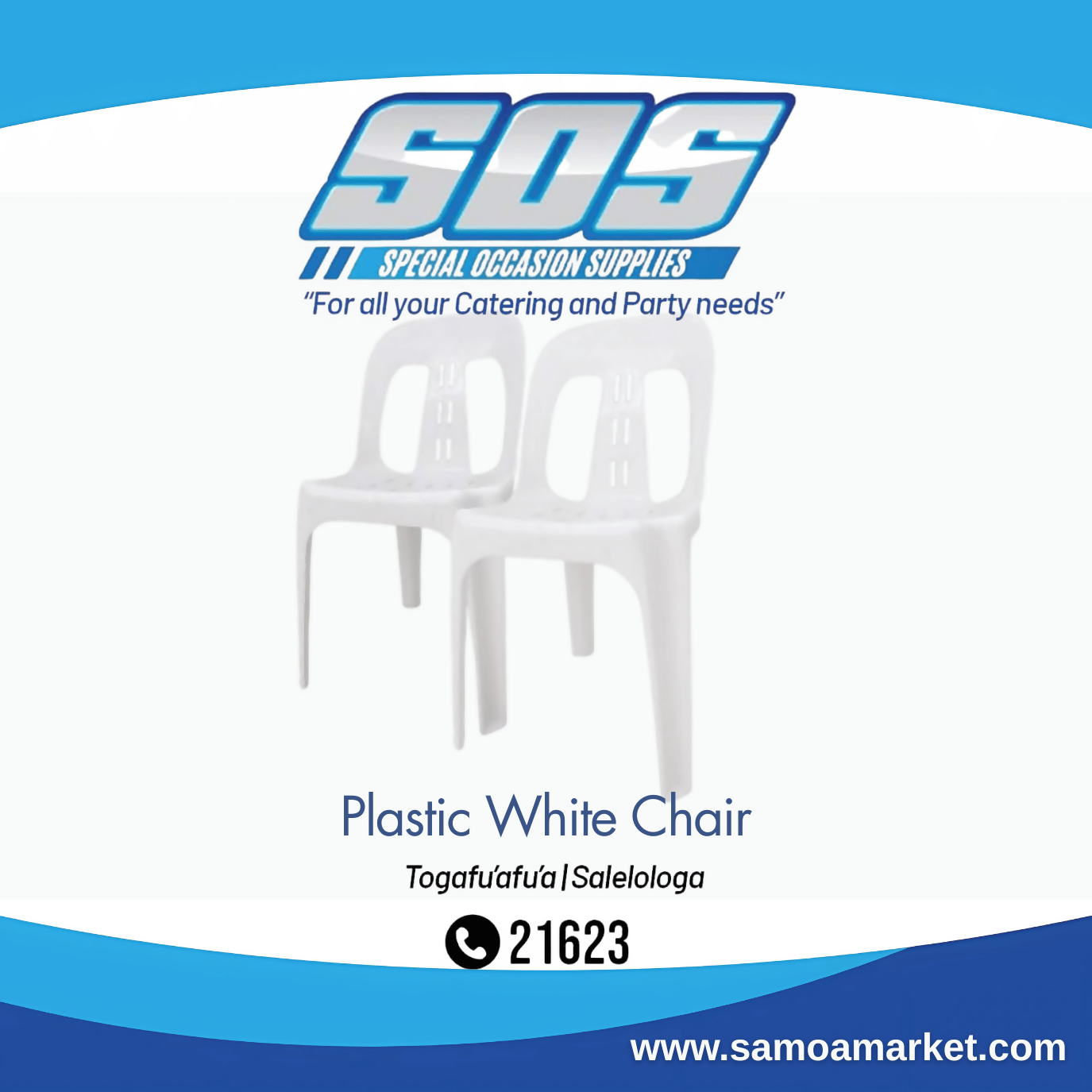 Plastic White Chair "Pick Up From S.O.S LTD, Togafuafua"