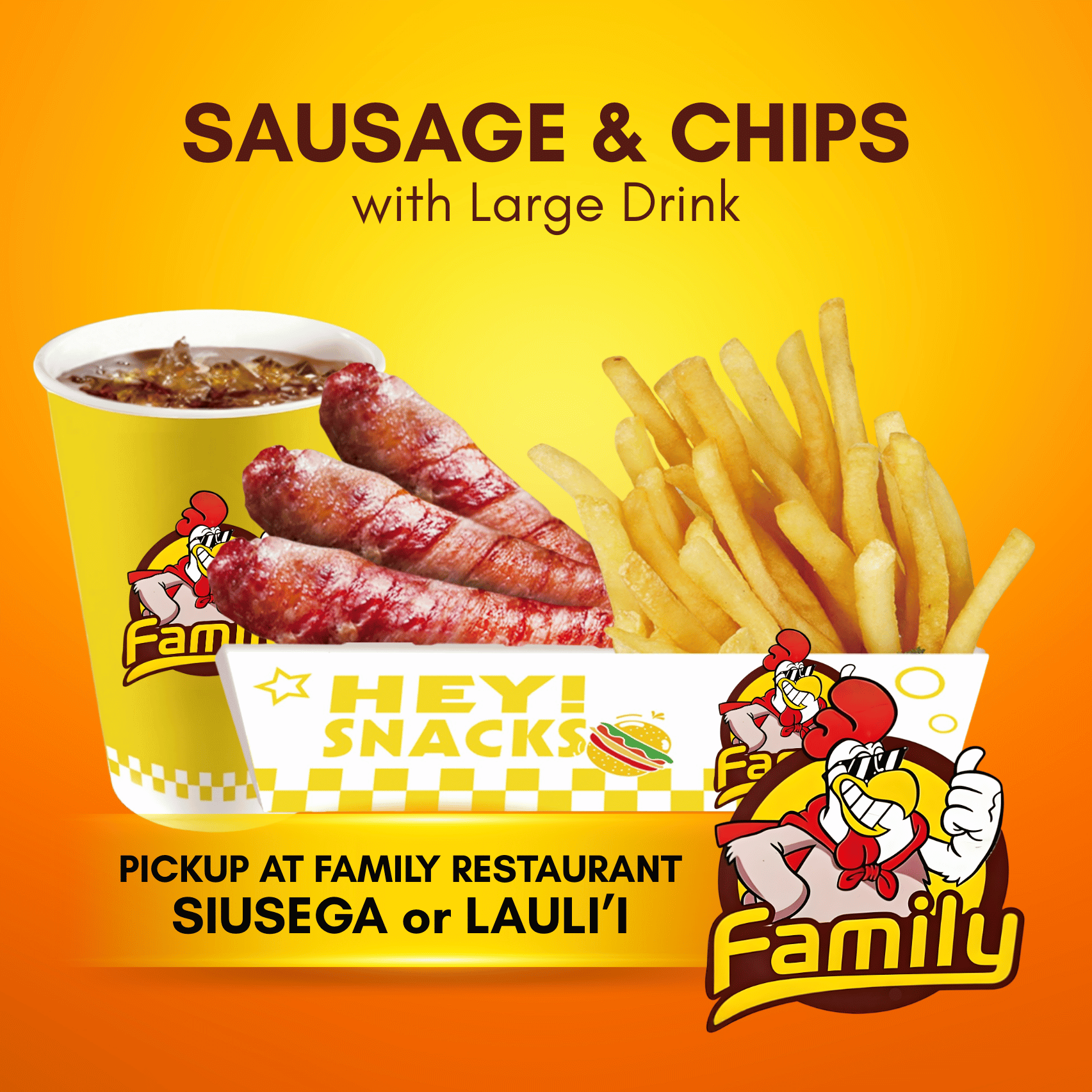 Sausage and Chips with Large Drink (PICK UP FROM FAMILY RESTAURANT SIUSEGA OR LAULI'I ONLY)